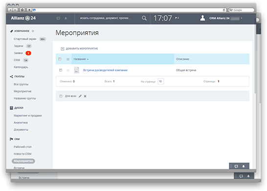 Пользователи CRM организуют мероприятия для клиентов, брокеров и сотрудников, выбирая приглашенных из списка. Настраивают описания, бюджет мероприятия, отметки о посещении, сроки и даты, назначаю исполнителей.
