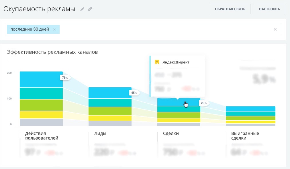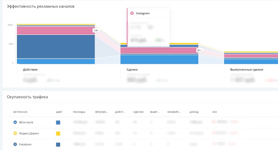 В системе также настроена сквозная аналитика, благодаря которой можно выявить наиболее эффективные источники привлечения клиентов. Таким образом, видно откуда приходит наибольшее количество заявок, дополнительно можно оценить их качество, посмотрев в отчетах процент заявок, перешедших в заказы.