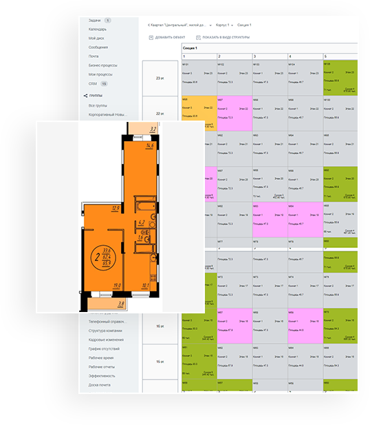 Шахматка объектов в Битрикс24 синхронизирована непосредственно с веб-сайтом.